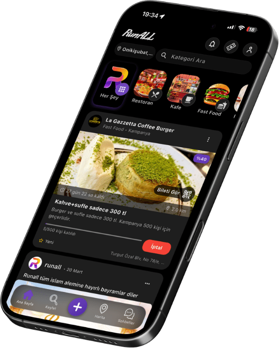 RunALL, şehirdeki kampanyaları keşfetmenin ve işletmelerin ürünlerini anında görmenin en kolay yolu. Yakınındaki fırsatları kaçırma, avantajları yakala. İşletmeler için tamamen ücretsiz kampanya oluşturma, bildirim gönderme ve yeni müşterilere ulaşma imkânı sunar